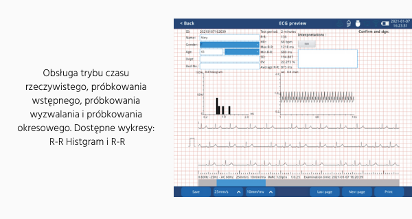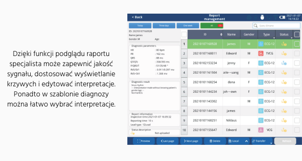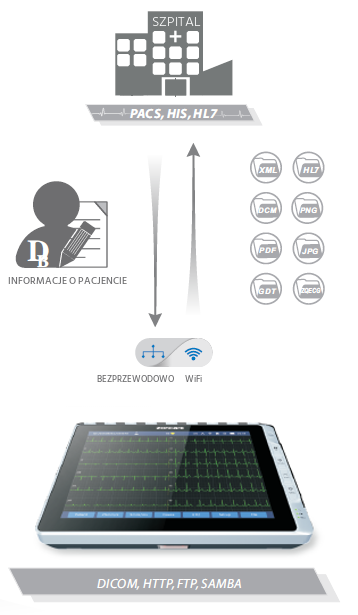 • wiele formatów zapisu ekg (PDF, PNG, XML, HL7, SCP, ZQECG, DICOM, GDT)