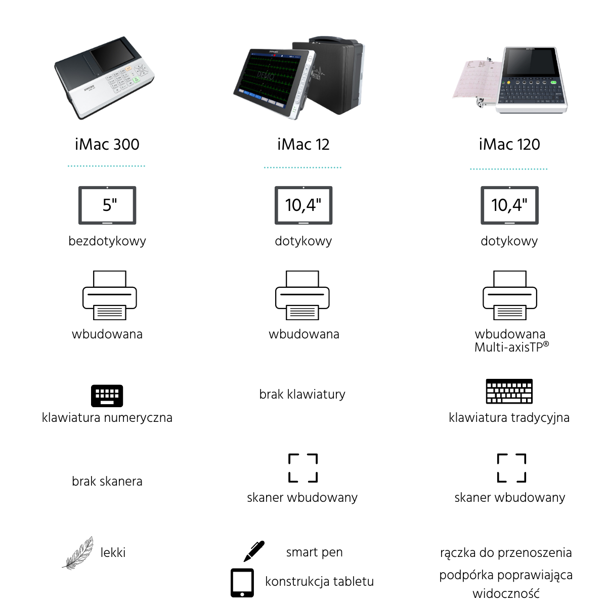 Aparat do EKG iMAC 12 wyróżnia unikalny design i solidne wykończenie.